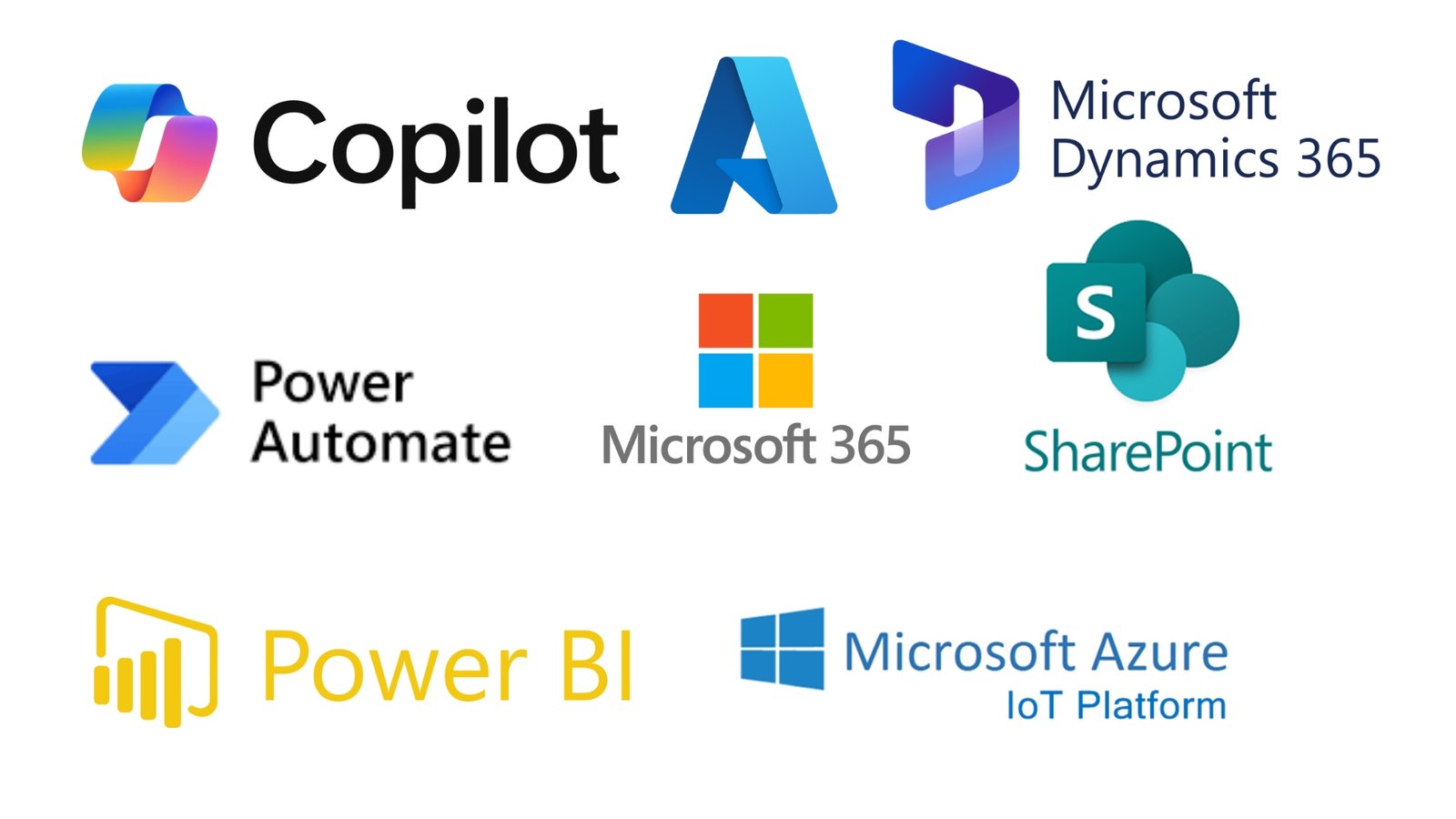 Power BI, Microsoft 365, SharePoint, Microsoft Teams, Power Automate, Dynamics 365, Microsoft AI Copilot, Azure AI
