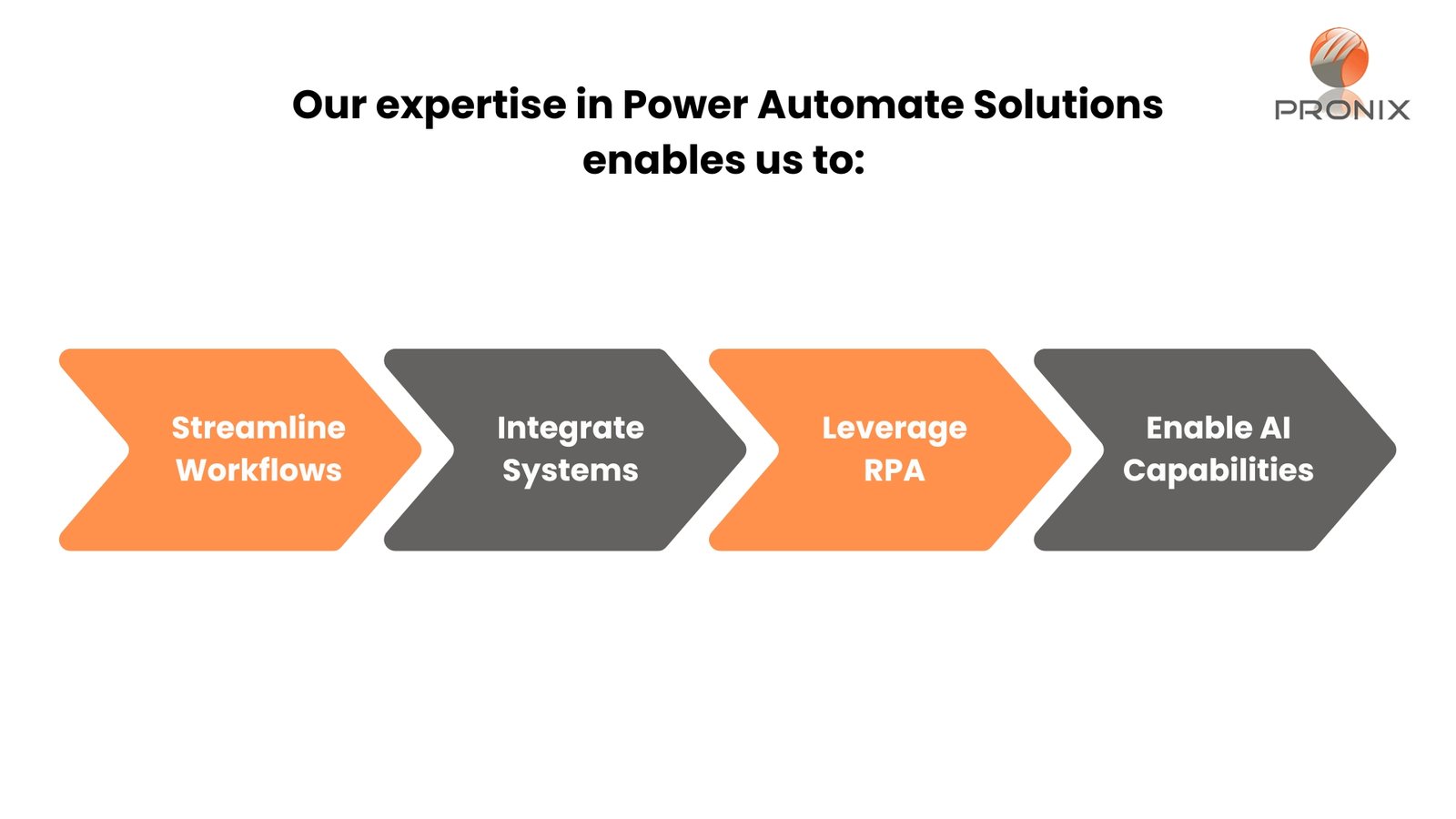 Automate your workflows, enhance productivity, and drive innovation with Pronix Inc. As a leading Business Automation Agency, we deliver Power Automate Solutions and Power Apps Development Services designed to help your organization thrive.