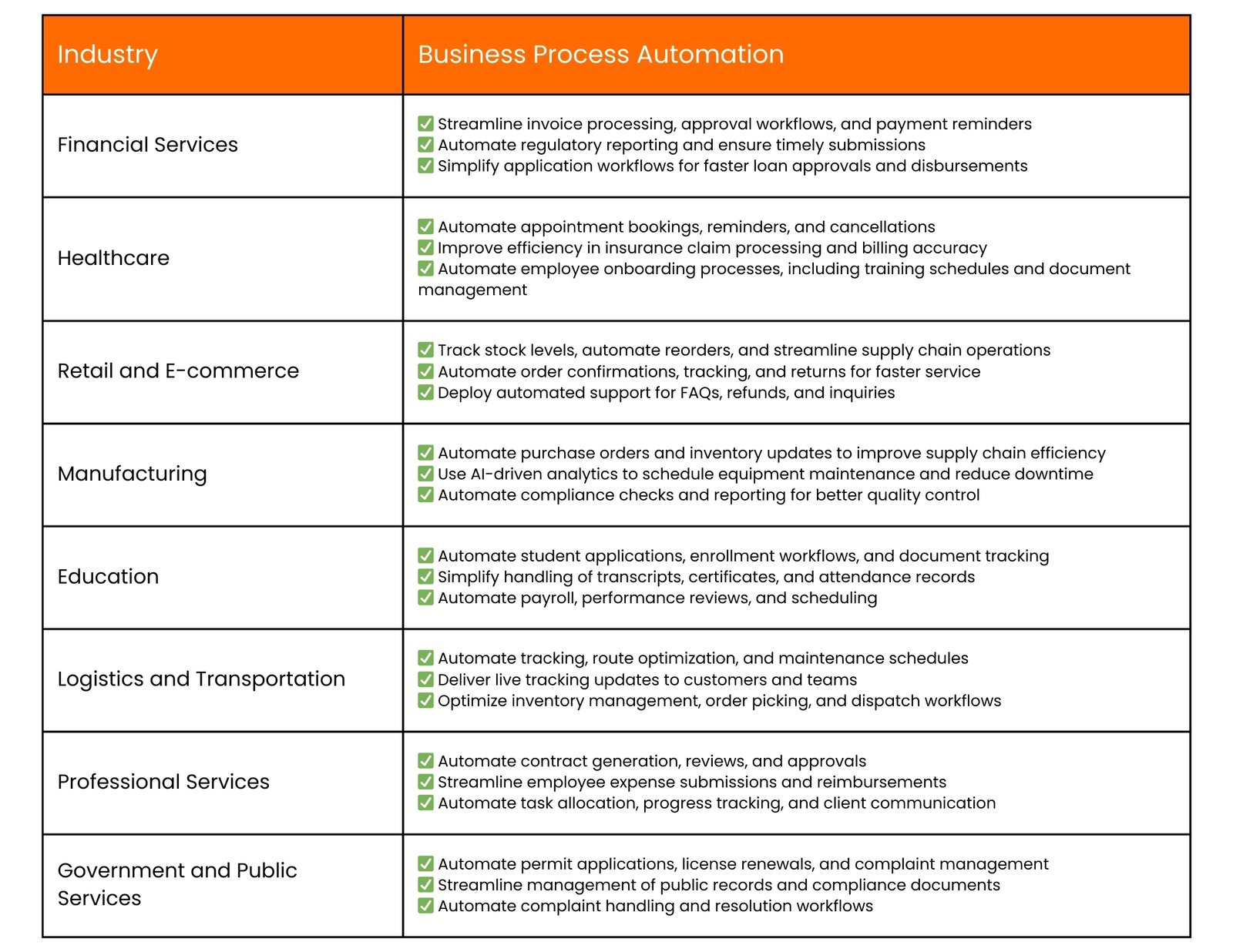 - Citizen Services: Automate permit applications, license renewals, and complaint management.